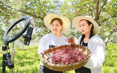 今年,甘肅省隴南市武都區(qū)的百萬(wàn)畝花椒喜獲豐收,隴南市相關(guān)部門及時(shí)組織本土電商人才深入田間地頭,通過(guò)電商平臺(tái)和直播帶貨方式助農(nóng)銷售。圖為日前,網(wǎng)絡(luò)主播在武都區(qū)郭河鄉(xiāng)候家彎村利用智能手機(jī)直播推介花椒。李旭春攝(人民視覺(jué))