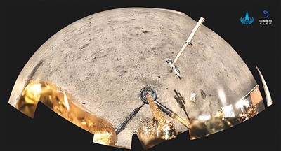 嫦娥五號(hào)探測(cè)器在月球表面展示國旗。新華社發(fā)