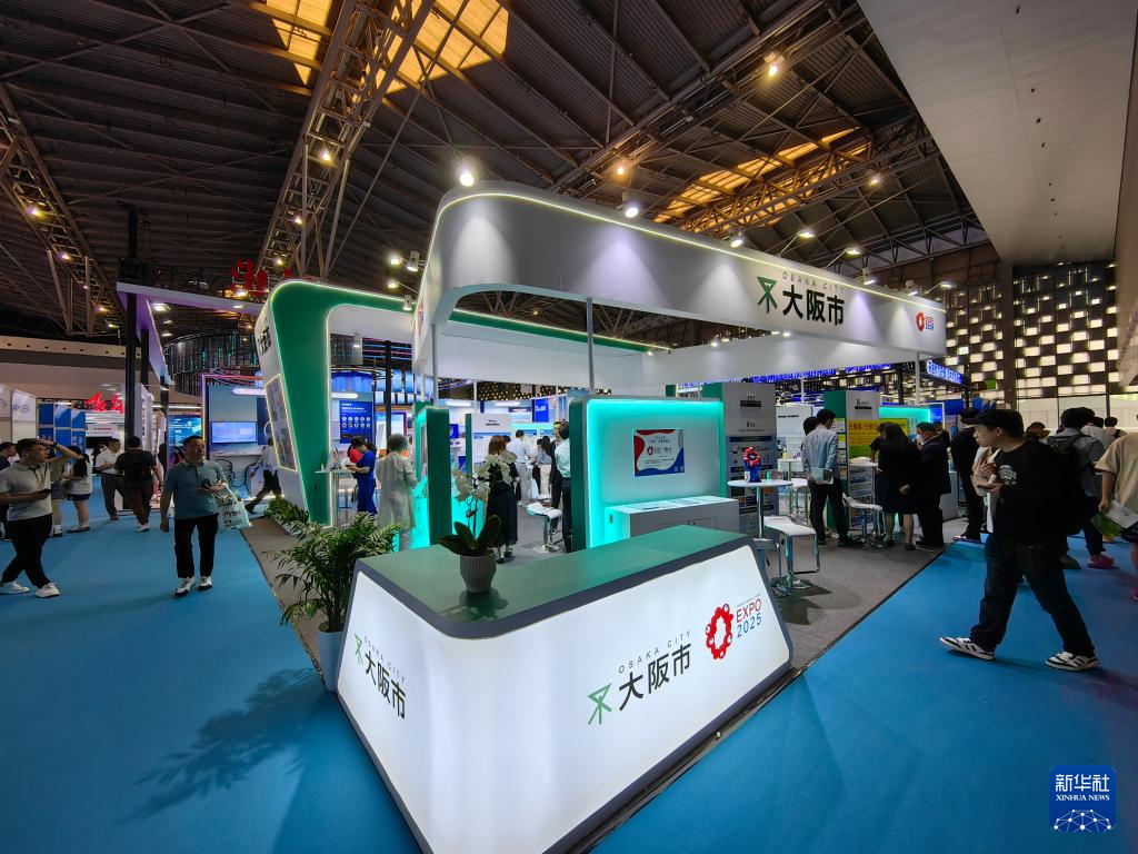 上交會(huì)上,觀眾正在參觀境外主賓城大阪帶來(lái)的技術(shù)。新華社記者周蕊 攝