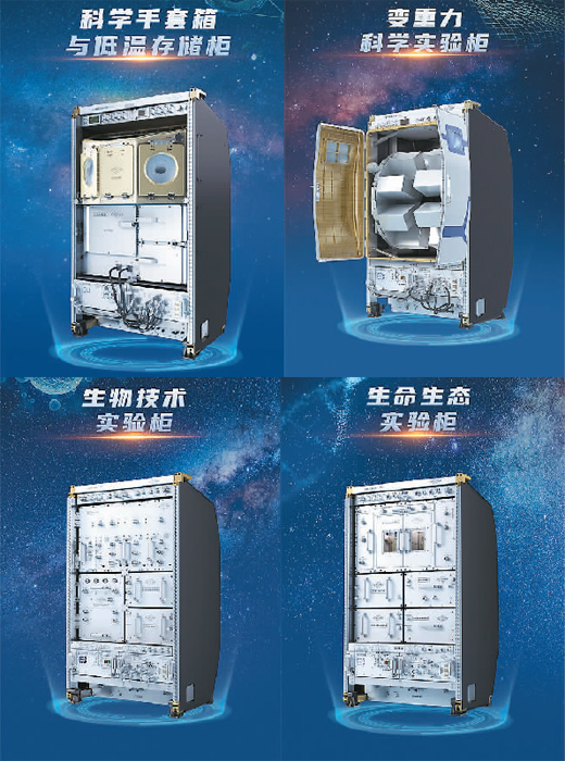 位于中國空間站問天實(shí)驗(yàn)艙的部分科學(xué)實(shí)驗(yàn)設(shè)施示意圖。圖片來源:中國科學(xué)院空間應(yīng)用工程與技術(shù)中心