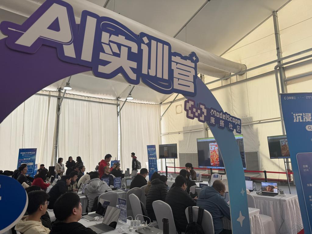 同期舉辦的AI實訓營、AI工作坊等成為開發(fā)者們的“腦暴專場”。新華社記者程思琪 攝