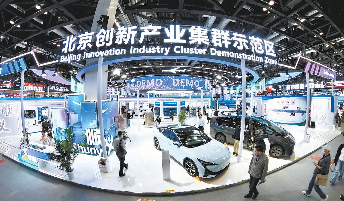 昨天,觀眾在北京創(chuàng)新產(chǎn)業(yè)集群示范區(qū)(順義)展區(qū)參觀。北京日?qǐng)?bào)記者 和冠欣攝