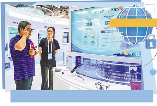觀眾在云南昆明舉行的2025年國家網(wǎng)絡(luò)安全宣傳周配套活動(dòng)上體驗(yàn)智能眼鏡。新華社記者 彭奕凱攝