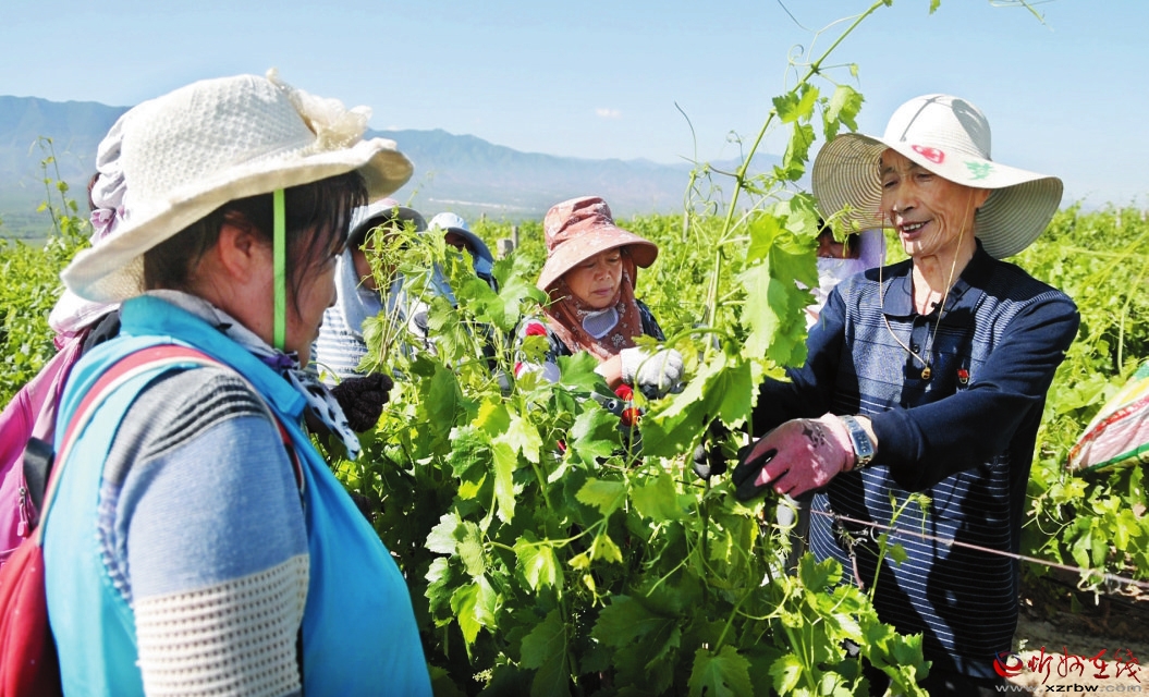 今年盛夏,繁峙縣下茹越鄉(xiāng)瓦磁地村1000多畝葡萄園里葡萄長勢喜人?!叭挚啃藜?七分靠綁蔓。這個葡萄的綁蔓至關重要……”葡萄園里,一個身形瘦弱的老頭正為一群婦女耐心講解著綁蔓技巧。75歲的張吉珍已為這片葡萄園提供技術服務整整五年。半個月前,張吉珍就算計著時間專程從偏關趕來,他每天要在葡萄園里干上幾個小時的活,晚上回到住處還要整理一天的心得。這一切讓瓦磁地村的黨支部書記侯秀廷看在眼里,記在了心上:“老張這個人講真話,辦實事,什么時候需要綁蔓,什么時候需要剪枝,他自己坐個大巴就來了,根本不用去請。我們這兒的老百姓都念他的好。”
