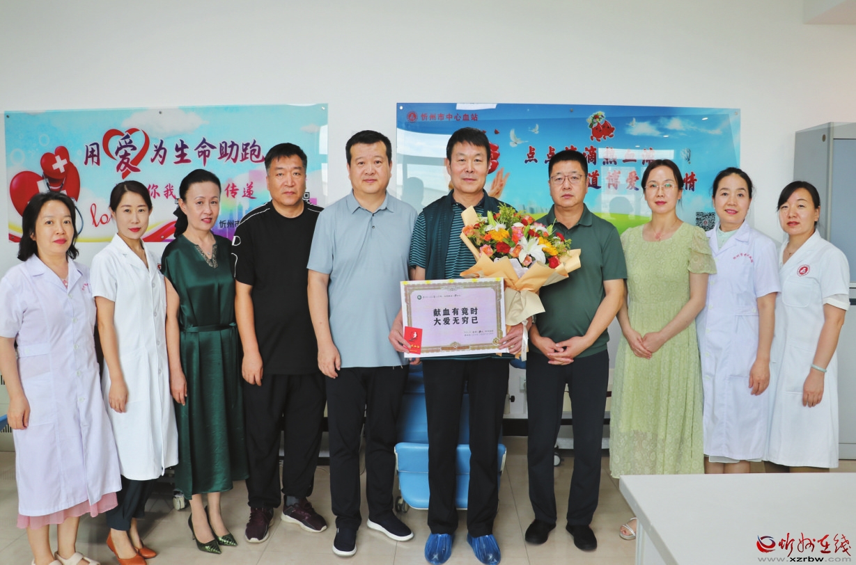 市中心血站工作人員與梁占海合影留念