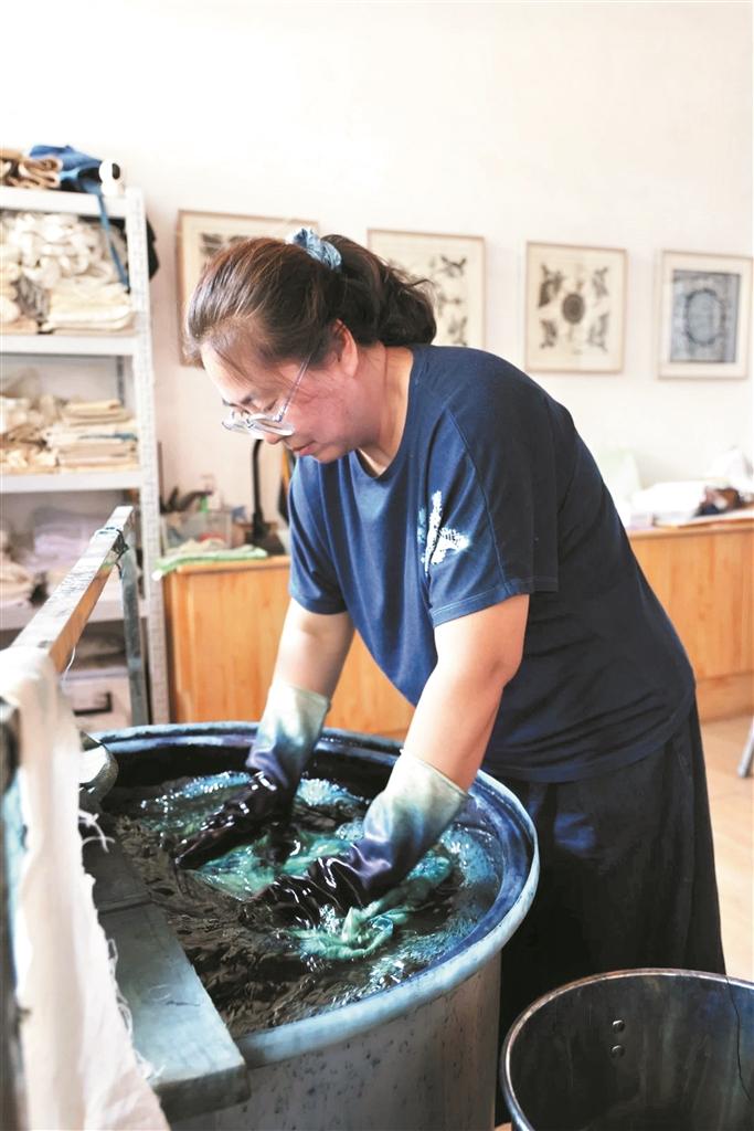 然而,當(dāng)夢(mèng)想照進(jìn)現(xiàn)實(shí),前行的路總是充滿坎坷。由于前期投入大,入不敷出的經(jīng)濟(jì)狀況讓她犯了難,為了支撐店鋪運(yùn)營,她不僅賣了房子,還貸了款?!半m然丈夫不支持,但是好在兒子很支持,最讓我欣慰的是,他常驕傲地跟別人介紹,‘這是我媽媽染的’‘我媽媽是非遺傳承人’,也正是這些,在我動(dòng)搖、想要放棄的時(shí)候,我選擇堅(jiān)持下去。”說到動(dòng)情處,趙慧言語滿是幸福。
