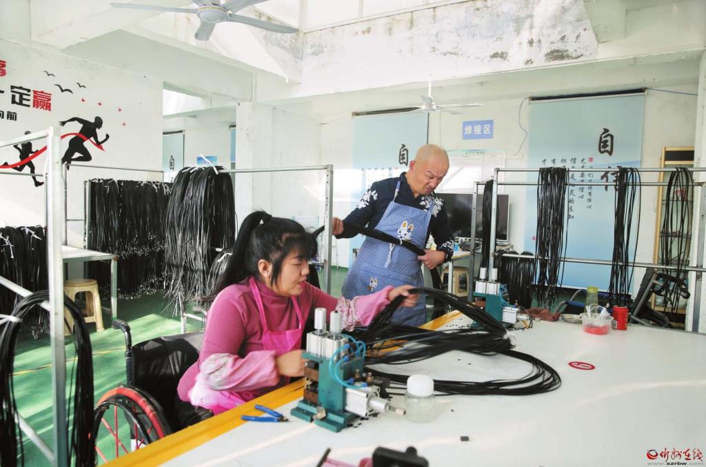 李國飛夫妻在線束加工幫扶車間忙碌