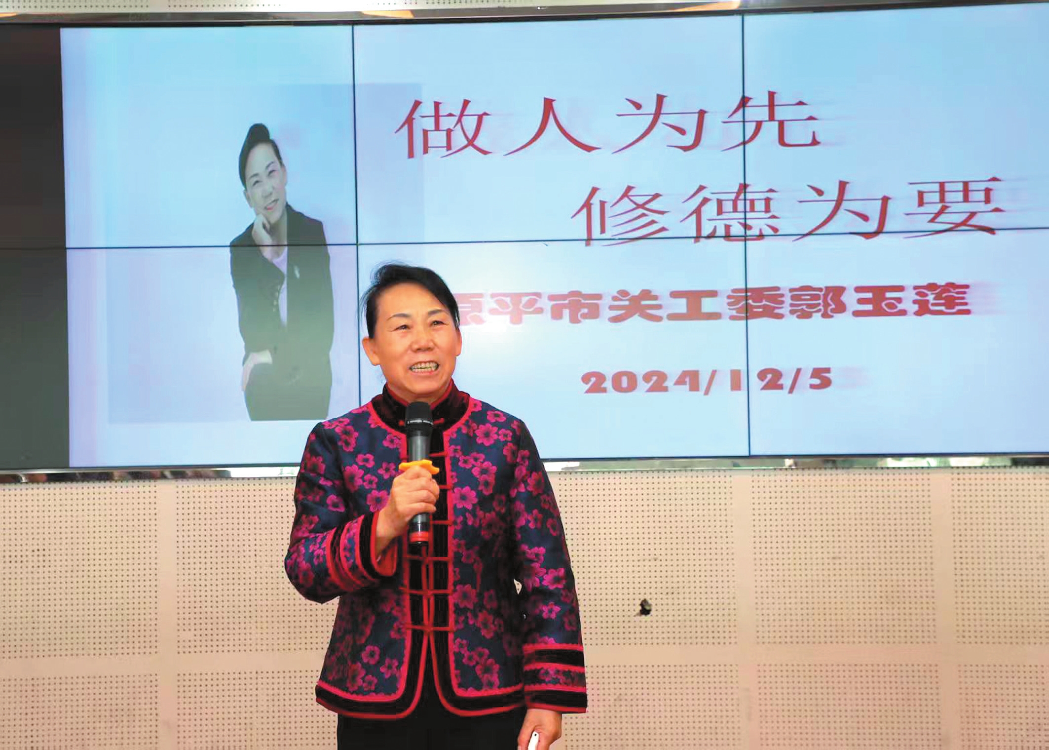 今年2月下旬,原平市婦聯(lián)在吉祥街道社區(qū)舉辦“玫瑰悅讀”課堂,作為主講老師,郭玉蓮為婦聯(lián)干部和50多名家長,作了以“誡子書”為主題的講座,引導大家傳承優(yōu)良家訓,弘揚美好家風。