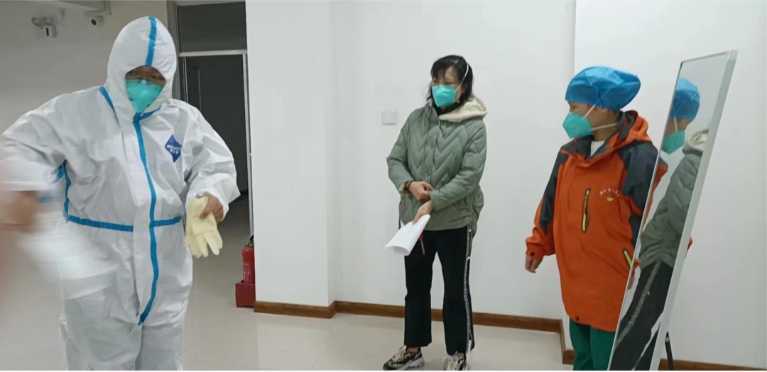 指導(dǎo)保潔人員物表消毒方法與注意事項(xiàng)在艱苦的工作條件下,雖然會被突發(fā)事件打亂節(jié)奏,但這些感控基礎(chǔ)工作,閆彩虹和她的感控團(tuán)隊(duì)成員一刻也沒有松懈。她說:“我深知自己肩上的責(zé)任,面對狡猾的病毒,一定要嚴(yán)防死守,‘零感染’是我的目標(biāo),也是我的使命,所以事無巨細(xì),我必須確保每一項(xiàng)工作都高質(zhì)量完成。”此時,面對看不見的“敵人”,閆彩虹帶領(lǐng)院感團(tuán)隊(duì)仍然奮戰(zhàn)在疫情防控最前沿,用實(shí)際行動踐行著責(zé)任與使命,彰顯院感人在疫情防控中不可或缺的關(guān)鍵力量。(聶艷英)