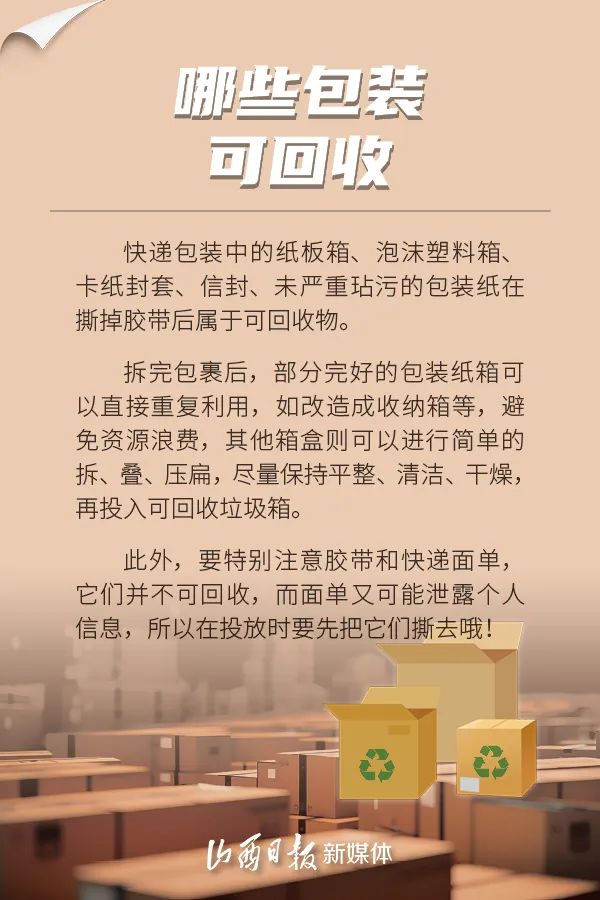 那么,快遞垃圾應(yīng)該如何進(jìn)行妥善分類(lèi)處理呢?快聽(tīng)我細(xì)細(xì)道來(lái)吧~