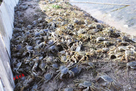 在人們的固有印象中,大閘蟹總是生長(zhǎng)在水面寬闊的河湖區(qū)域。誰成想,在臨猗縣萬畝黃河灘涂,也能產(chǎn)出肥美鮮嫩的大閘蟹?!按箝l蟹?對(duì)對(duì)對(duì),我們能養(yǎng)!”1月12日,山西晚報(bào)記者撥通了程俊懷的電話。程俊懷是臨猗縣孫吉鎮(zhèn)薛公村黨總支書記、村委會(huì)主任,同時(shí)還是山西薛公農(nóng)業(yè)開發(fā)有限公司總經(jīng)理。電話里,程俊懷說著一口晉南話,語氣熱情且中氣十足。