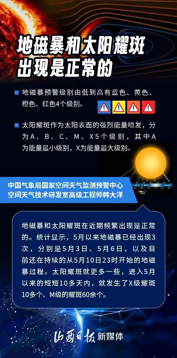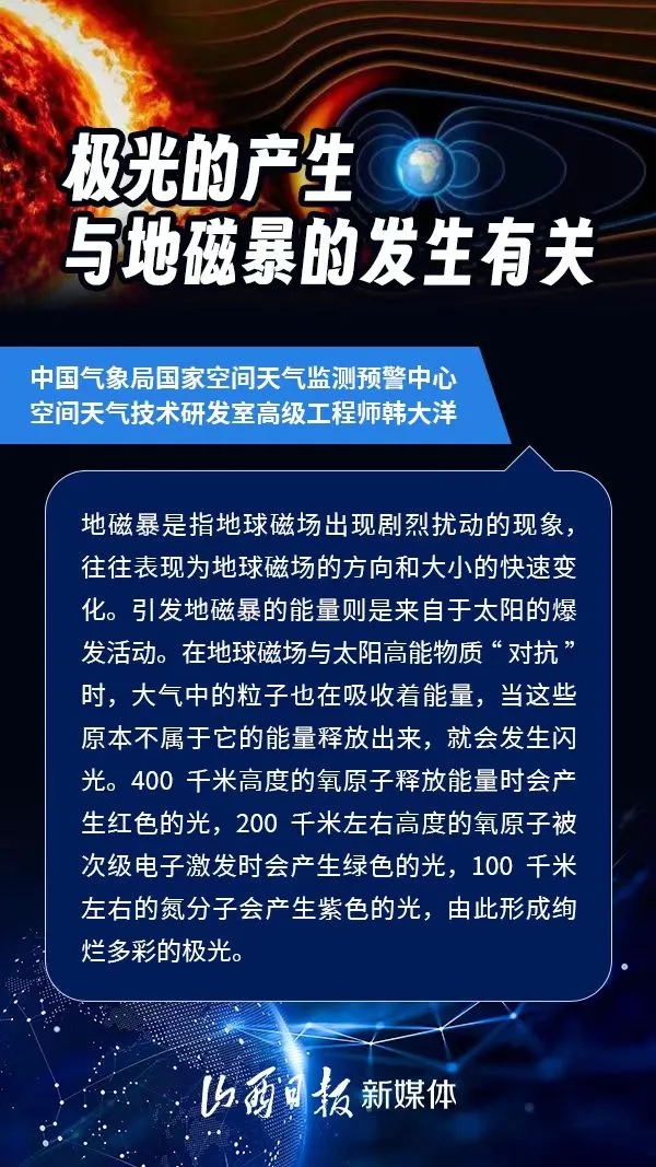 近日,我國多地出現(xiàn)極光現(xiàn)象,引起人們廣泛關(guān)注。極光現(xiàn)象與地磁暴活動(dòng)密切相關(guān)。地磁暴以及近期頻繁出現(xiàn)的太陽耀斑為什么發(fā)生?對(duì)人們的生活有影響嗎?下面一起來看專家解讀。