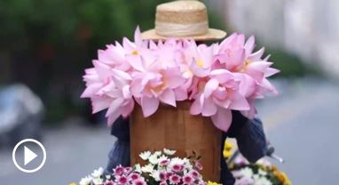 女子騎單車賣荷花 背簍里是人間美好