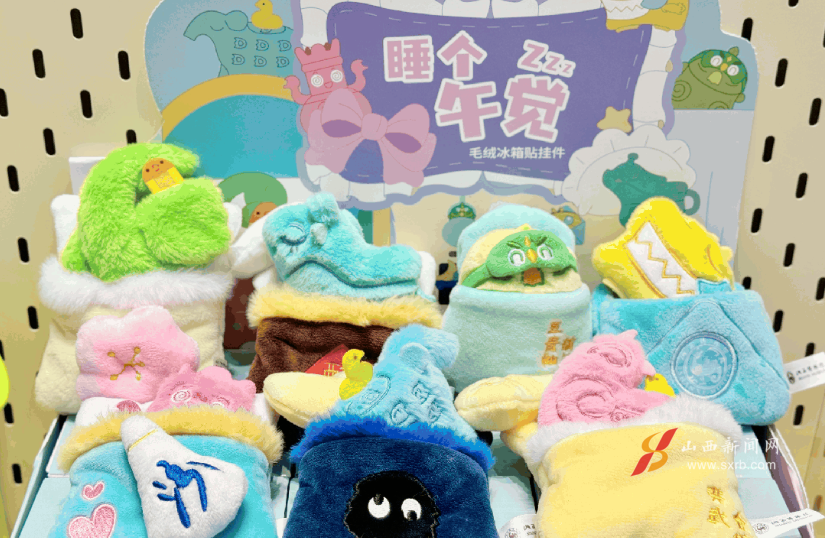 除“睡個(gè)午覺”系列外,山西博物院“逛吃逛吃”毛絨掛件、“檐之?有物”古建筑毛絨玩具、其樂“絨絨”噗噗捏捏樂毛絨掛件、“卣”點(diǎn)意思毛絨筆記本,以及暑期爆款文創(chuàng)發(fā)飾等新品,造型生動(dòng)、實(shí)用美觀,以“輕量化”形態(tài)讓觀眾近距離感受山西歷史文化魅力。