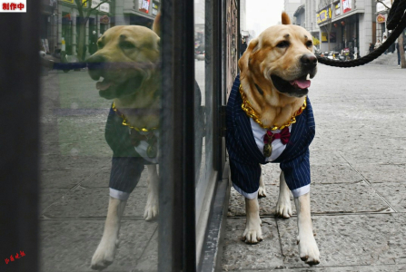 4.“憨憨”換上帥氣的衣服走在街頭。