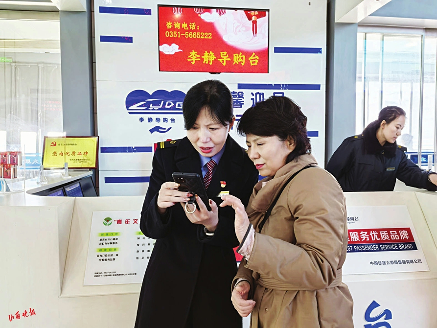 自助售取票區(qū),幾名放假回家的大學(xué)生圍著自助機(jī)手足無措,原來是誤買了車次,急需退票重買,卻不熟悉機(jī)器操作流程。李靜快步上前,手把手指導(dǎo)他們使用12306的免費(fèi)退改功能,一邊協(xié)助查詢余票、快速完成改簽,一邊不忘提醒學(xué)生們錯(cuò)峰出行,保管好隨身的證件和行李。“今年春運(yùn)又推出了不少便民舉措,30分鐘內(nèi)免費(fèi)退改、老年人優(yōu)先購票、靜音車廂范圍擴(kuò)大,我們的工作就是把這些好政策講清楚、落到位,讓每一位旅客都旅途順暢?!崩铎o一邊幫學(xué)生操作機(jī)器,一邊對(duì)身旁的山西晚報(bào)·山河+記者說。