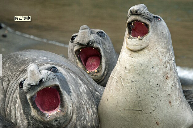 一群象海豹扯開嗓子拼唱功的圖片真是滑稽極了!英國(guó)《每日郵報(bào)》發(fā)布了一組有趣的圖片,記錄了象海豹們頭微微向后仰,張大嘴巴,試圖模仿明星們的可愛畫面。