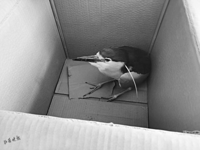 一位村民說:“我是在路邊看到它的,可走到它身邊,它卻沒飛走,是不是受傷了?”另一位村民指著紙箱里的“漂亮的鳥”說:“看它的外形、顏色,都跟平常見的鳥不一樣……”兩位村民擔(dān)心自己處置不當(dāng),于是便送往派出所,向民警求助。