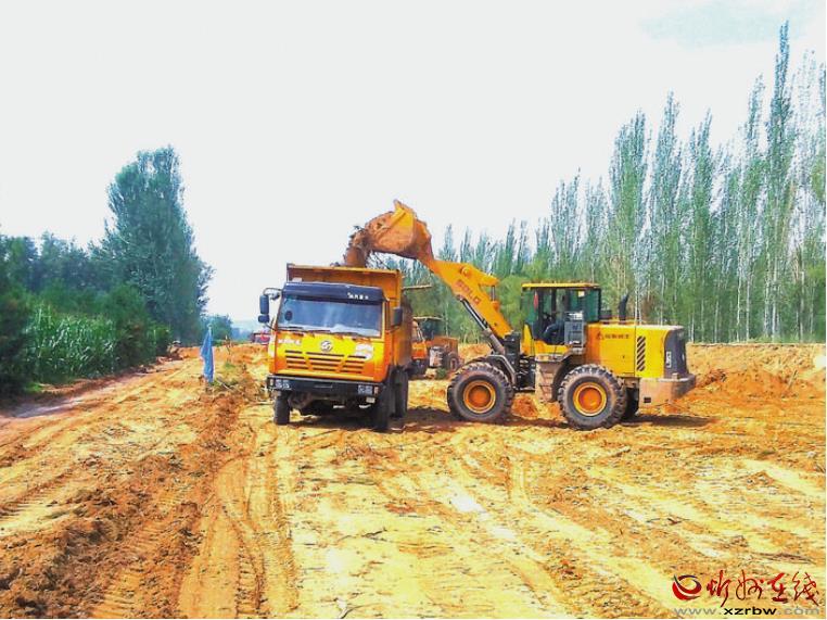 圖為8月20日大型機械正在娘娘灘至船灣段建設工地進行挖方運輸作業(yè)。