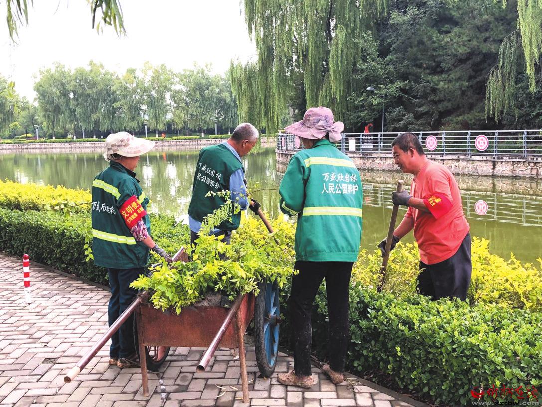 為美化綠化人居環(huán)境,營造“文明健康 有你有我”的社會氛圍,近日,佩戴“文明使者”袖章的園林工人在人民公園進(jìn)行苗木補植,對花卉進(jìn)行更換,助力我市創(chuàng)建全國文明城市。 張 曄 攝