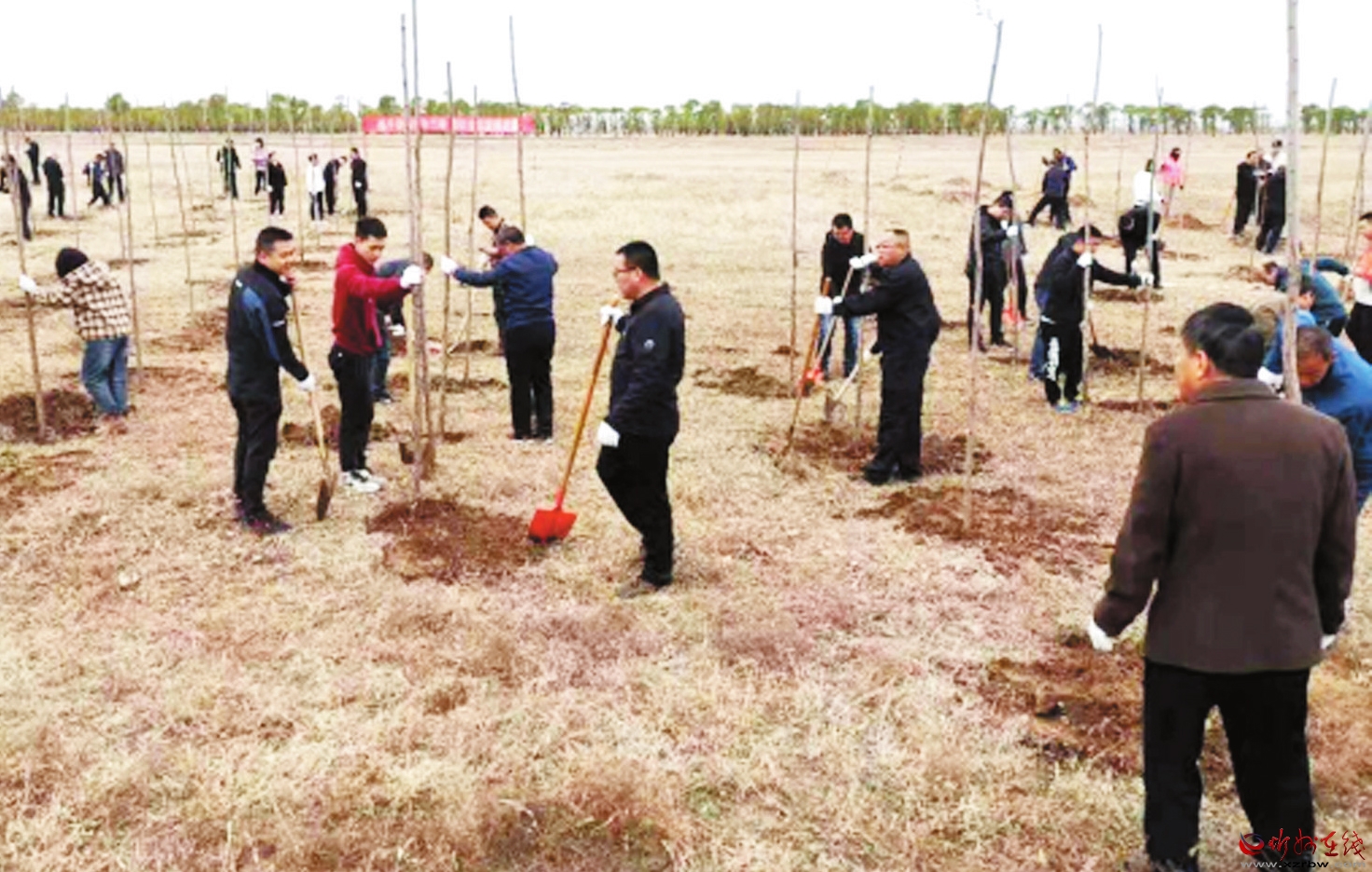 4月13日上午,市生態(tài)環(huán)境局定襄分局在滹沱河定襄縣受祿鄉(xiāng)段開展義務(wù)植樹活動(dòng)。植樹現(xiàn)場(chǎng),大家分工協(xié)作,揮鍬挖坑、扶苗澆水,共植樹百余株。該分局還在現(xiàn)場(chǎng)懸掛“積極開展高速沿線環(huán)境綜合整治 持續(xù)改善全縣生態(tài)環(huán)境質(zhì)量”的宣傳標(biāo)語,營(yíng)造生態(tài)環(huán)境保護(hù)工作良好氛圍。(本報(bào)記者 張劍雄 攝)