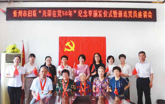 本報訊 6月25日上午,忻州市婦聯(lián)舉行“光榮在黨50年”紀念章頒發(fā)儀式暨新老黨員座談會。市婦聯(lián)機關在職黨員干部和老黨員代表參加。