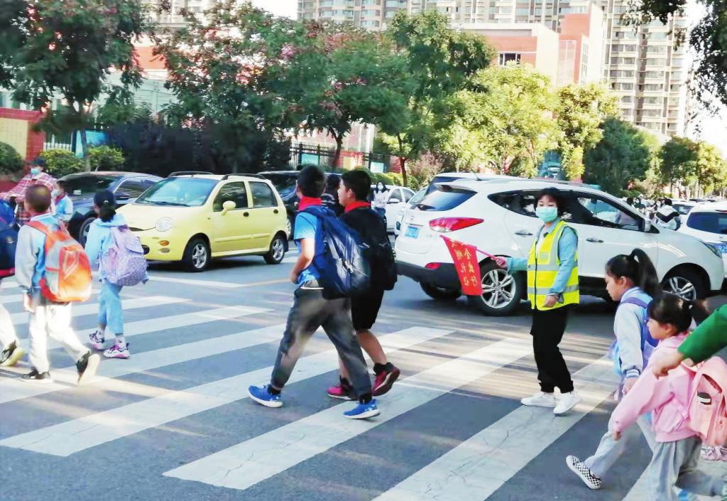 忻州市長征小學位于交通情況復雜路段,開學以來,每天學校周圍送孩子上學的車輛較多,雖然有交警和學校護崗人員在現(xiàn)場指揮,但人與車往往交織在一起,存在安全隱患,于是長征小學六年級家長們自愿參與,輪流擔任護學專人,每天提前半小時到崗,在學生必經(jīng)之道護送學生過馬路。圖為護學人員“護航”學生通過斑馬線。 (李 濤 攝)