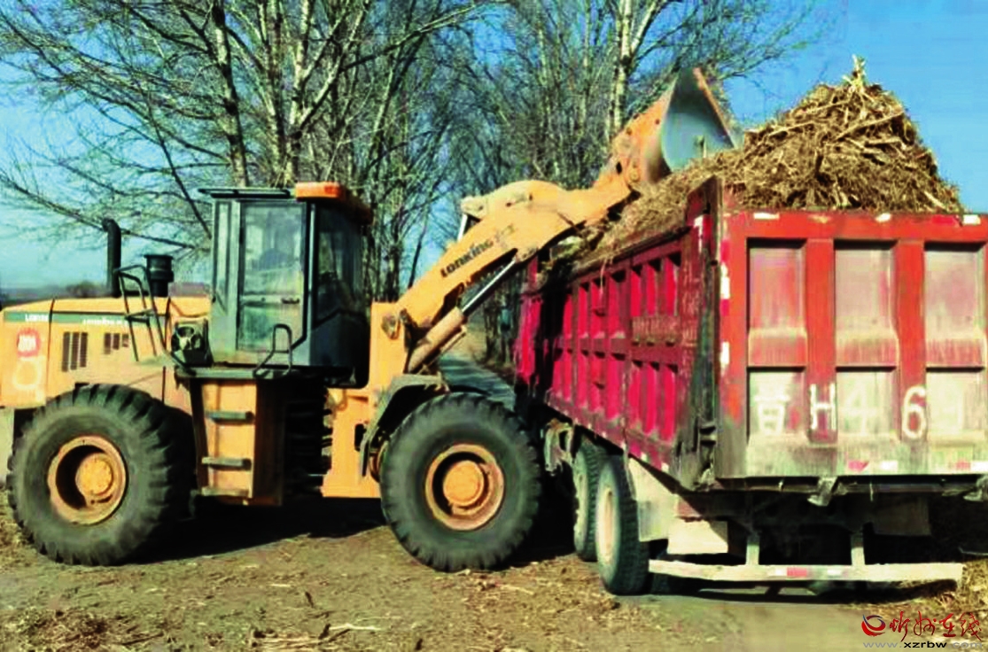 圖為神池縣八角鎮(zhèn)集中收秸點正在清運秸稈。