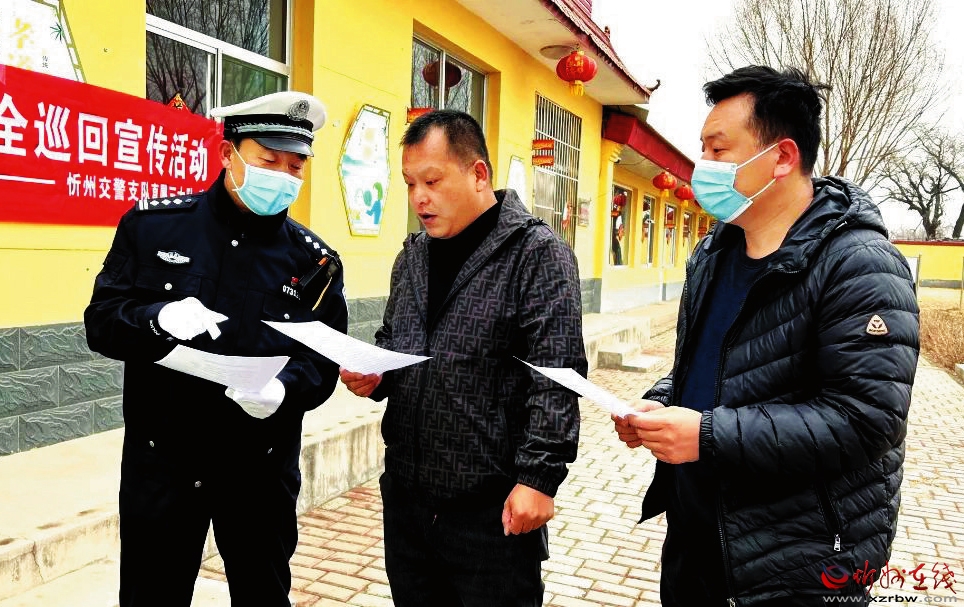 為進一步增強農(nóng)民群眾交通安全意識和文明出行意識,預防和減少道路交通事故的發(fā)生,近日,市公安局交警支隊直屬三大隊的民警輔警走進忻府區(qū)樊野村、逯家莊、東社村等地,開展“美麗鄉(xiāng)村行”交通安全宣傳活動。
