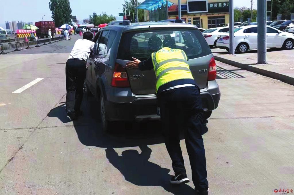 6月5日上午,忻州收費(fèi)站出口處由于有車輛故障而出現(xiàn)堵塞。當(dāng)班班長劉鈞迅速行動,幫助司機(jī)將故障車輛推至安全區(qū)域,并聯(lián)系了附近修理廠,叮囑司機(jī)在行車前注意檢查車輛,及時(shí)消除隱患,確保安全行車。(李瑞軍 趙旭霞攝)