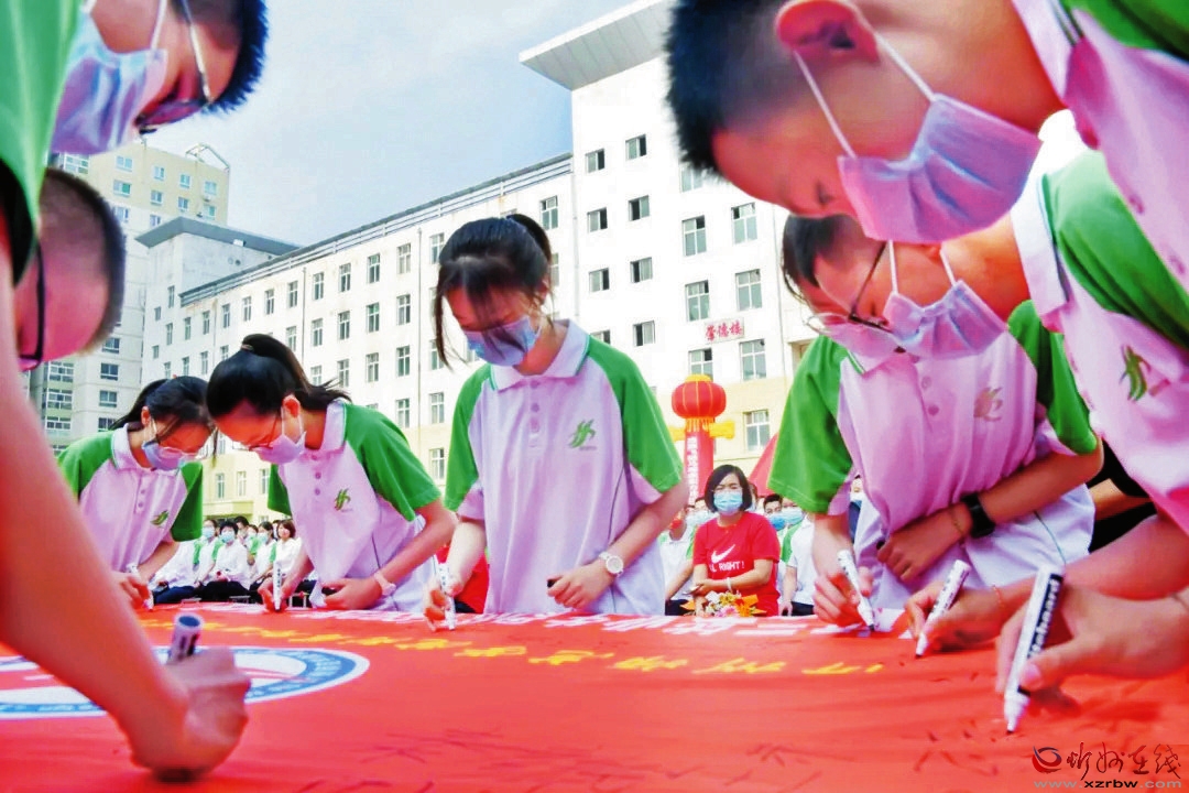 近日,忻州師范學(xué)院附屬外國(guó)語(yǔ)中學(xué)舉行2022屆初三學(xué)生畢業(yè)典禮,學(xué)校領(lǐng)導(dǎo)、家長(zhǎng)代表、初三年級(jí)老師共聚現(xiàn)場(chǎng),為學(xué)業(yè)有成、即將離開(kāi)母校、開(kāi)啟人生新征程的畢業(yè)生送行,并送上美好祝福。畢業(yè)生們心懷感恩,在校旗上簽下自己的名字,期待新的開(kāi)始。(趙晨善 攝影報(bào)道)