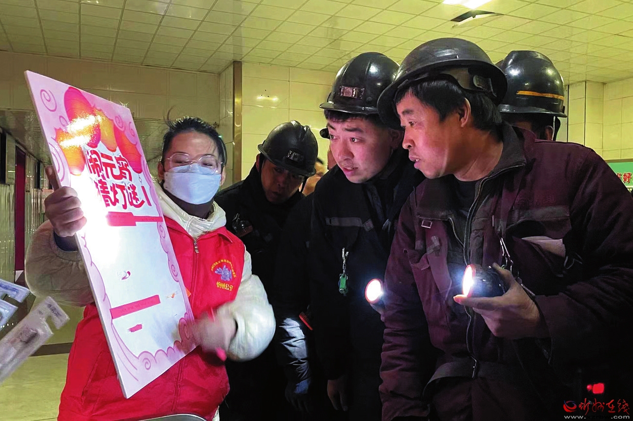 溫暖送元宵,幸?!耙患胰恕?。女工家屬協(xié)管員們早早來到井口工作站,為出入井的職工準(zhǔn)備好寓意著平安幸福團(tuán)圓的湯圓、紅腰帶、靴襪、蘋果等慰問品,祝福他們平安歸來。