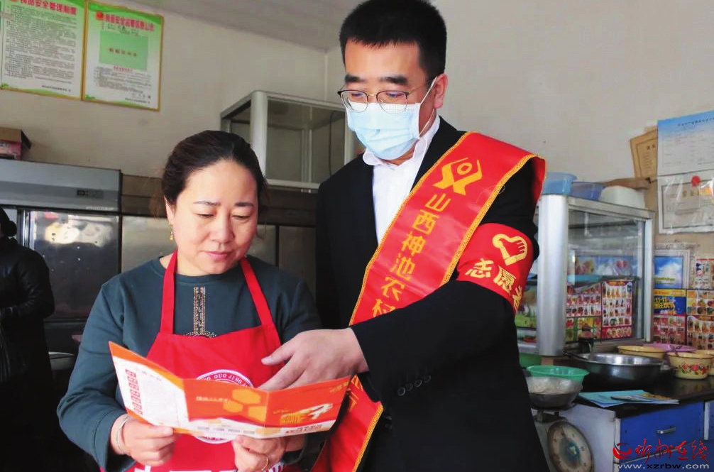 圖為銀行工作人員走訪客戶,宣傳金融知識。