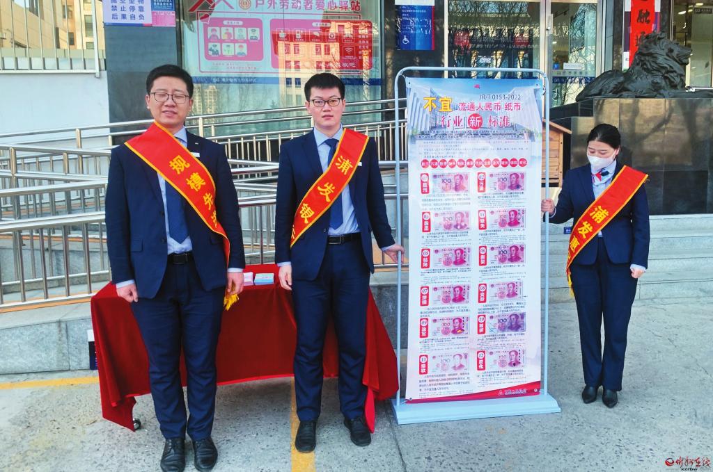 活動(dòng)期間,為全面做好宣傳引導(dǎo),支行員工在網(wǎng)點(diǎn)及廳堂醒目位置擺放不宜流通人民幣及反假幣宣傳海報(bào)、宣傳折頁(yè),并安排工作人員主動(dòng)向金融消費(fèi)者進(jìn)行宣傳;利用客戶等候辦理業(yè)務(wù)時(shí)間,以通俗易懂的話語(yǔ)講解人民幣知識(shí)及反假幣相關(guān)知識(shí),告知客戶殘損幣的兌換流程和兌換規(guī)則,現(xiàn)場(chǎng)與群眾進(jìn)行互動(dòng),提高愛(ài)護(hù)人民幣意識(shí);向現(xiàn)場(chǎng)群眾告知該行將無(wú)償提供殘損人民幣兌換工作,提高客戶對(duì)流通人民幣鑒別能力,增強(qiáng)客戶的風(fēng)險(xiǎn)防范意識(shí),切實(shí)提高支行現(xiàn)金服務(wù)水平。
