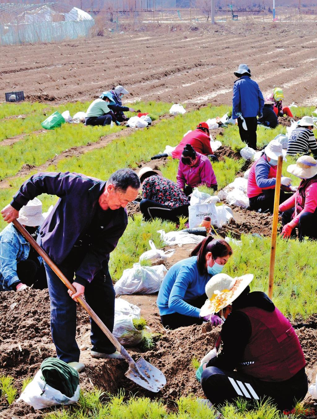近日,原平市新原街道辦小原平村居民正在本村林園務(wù)工,栽植樹苗。原平市不斷完善勞動力轉(zhuǎn)移人口和農(nóng)村勞動力就業(yè)創(chuàng)業(yè)支持政策,積極創(chuàng)新就業(yè)渠道,促進了閑散勞動力就業(yè),提升了農(nóng)民收入。 (吉建平 攝)