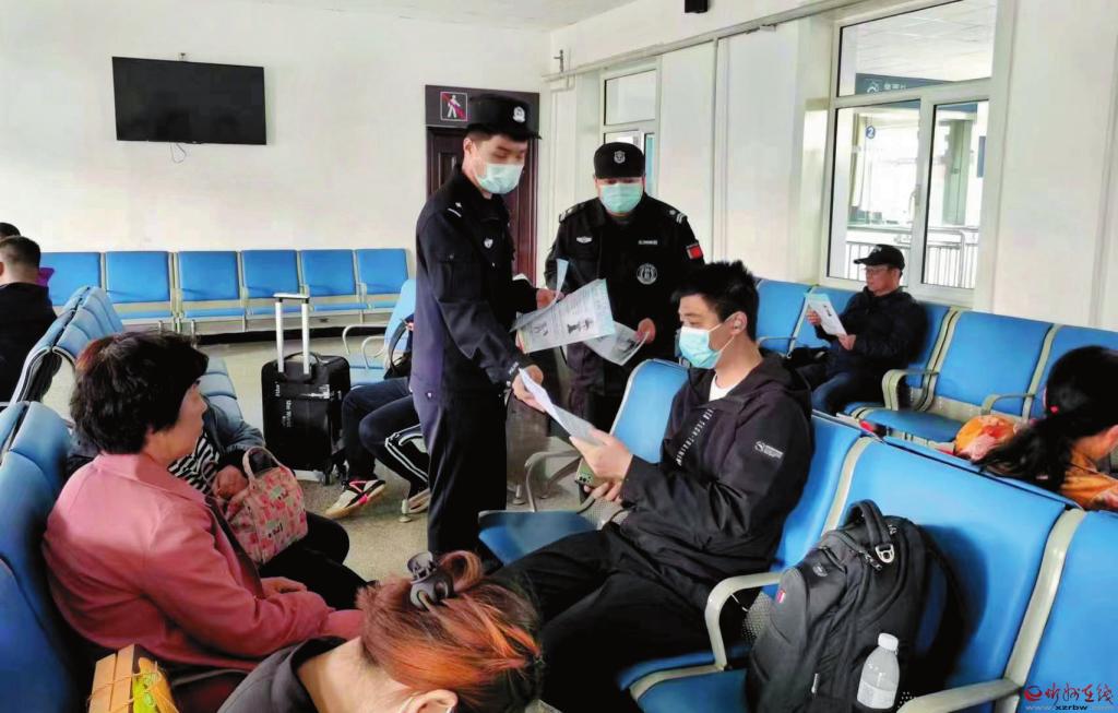 為保護(hù)旅客財(cái)產(chǎn)安全,五寨火車站派出所民警采取多種方式對旅客開展普法教育和反電信詐騙宣傳,受到旅客好評(píng)。圖為民警在候車室向旅客發(fā)放宣傳資料。 (索效光 攝