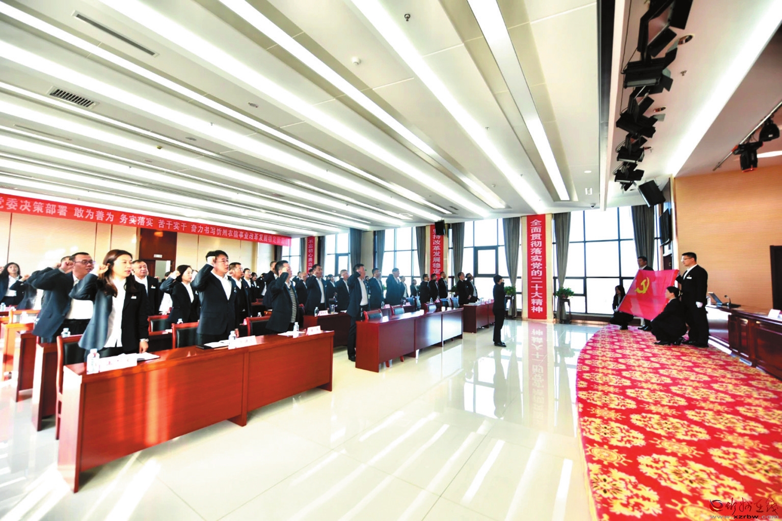 “我志愿加入中國(guó)共產(chǎn)黨,擁護(hù)黨的綱領(lǐng),遵守黨的章程……”在市聯(lián)社機(jī)關(guān)黨支部書(shū)記的帶領(lǐng)下,市縣兩級(jí)機(jī)構(gòu)15個(gè)支部82名黨員面對(duì)黨旗,莊嚴(yán)宣讀入黨誓詞。通過(guò)重溫入黨誓詞,重憶入黨初心,全體黨員增強(qiáng)了自身的榮譽(yù)感、責(zé)任感和使命感,更加堅(jiān)定立足崗位作奉獻(xiàn)、永遠(yuǎn)跟黨走的信心和決心。