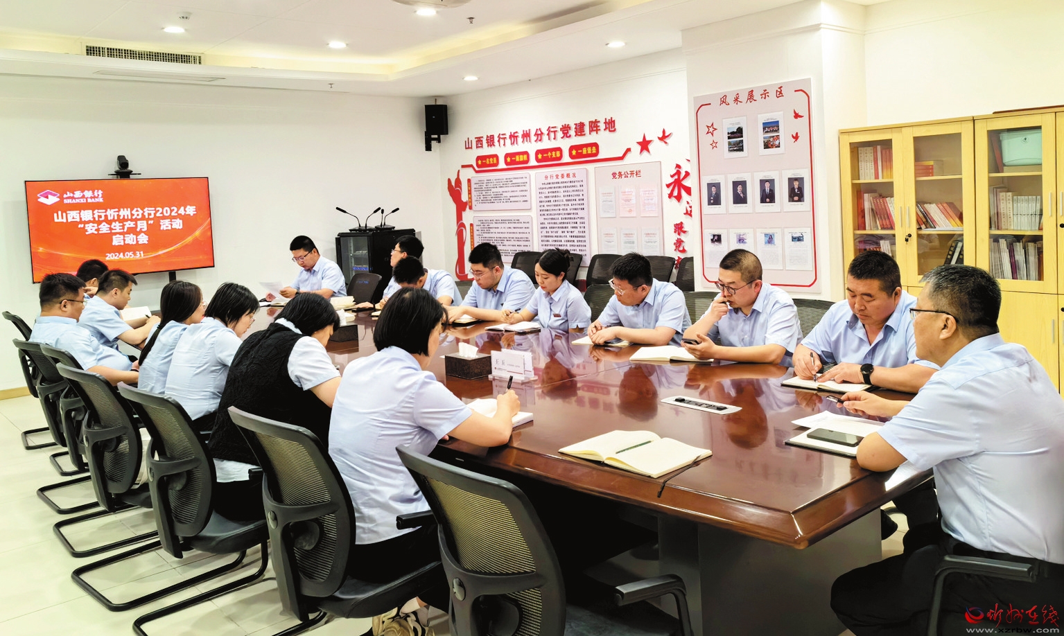 今年6月是第23個全國“安全生產月”,主題是“人人講安全、個個會應急——暢通生命通道”。為認真貫徹落實上級部門安全生產工作部署要求,5月31日,山西銀行忻州分行召開“安全生產月”活動啟動會,要求各責任主體全面壓實安全責任,深入開展安全宣傳,堅決守牢安全生產底線。啟動會后,全體參會人員集中觀看了《安全生產 責任在肩》警示教育片。(秦浩東攝)