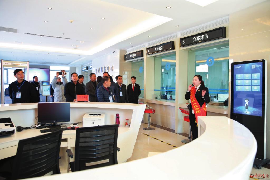 圖為市中級人民法院訴訟服務(wù)中心工作人員正在宣講相關(guān)法律法規(guī)。溫振華攝