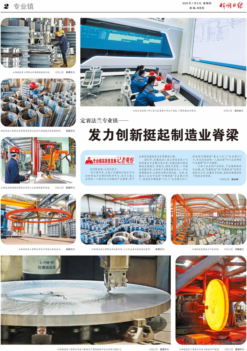 浪涌四方,潮起定襄。定襄,這個以法蘭鍛造聞名全國的晉北工業(yè)小城自2022年成功入選山西省首批十大省級重點專業(yè)鎮(zhèn)以來,就開始了在法蘭產(chǎn)業(yè)賽道上的強勢進階。去年以來,定襄縣以黨的二十屆三中全會精神為指引,全面深化改革,用“高”“智”“綠”“服”的理念和行動,進一步推進法蘭產(chǎn)業(yè)質(zhì)量變革、效率變革、動力變革。