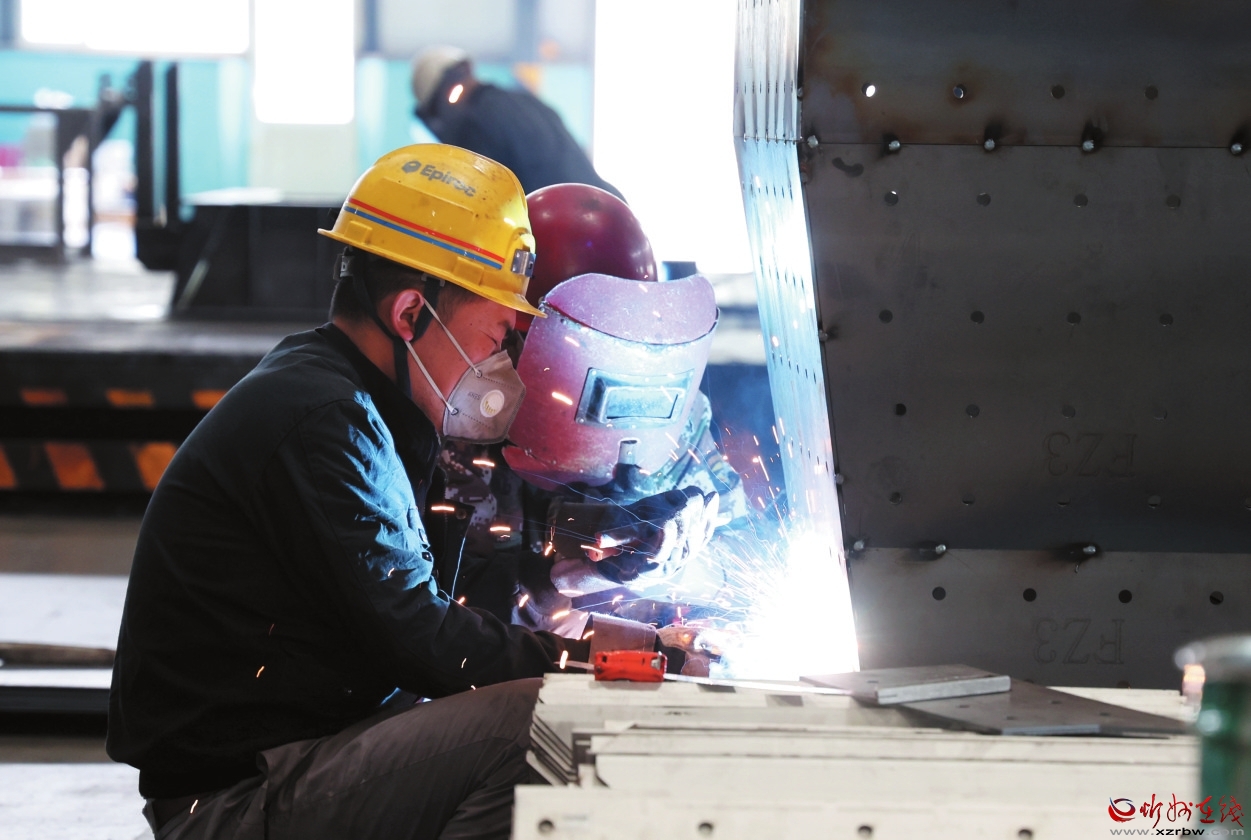 在久力科技的機械加工車間,工作人員正在對零部件進行焊接作業(yè)。記者范琛攝