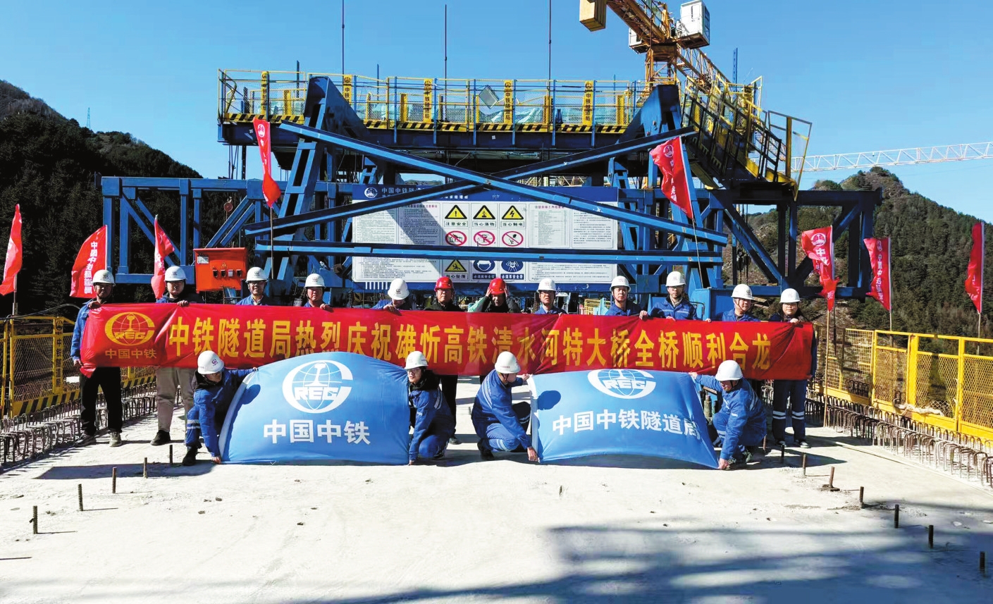 自2023年3月16日首根樁基開鉆以來,中鐵隧道局集團(tuán)建設(shè)團(tuán)隊晝夜奮戰(zhàn),始終秉持“超前策劃、高效執(zhí)行”的建設(shè)理念。為保障施工安全與工程質(zhì)量,團(tuán)隊多次邀請國內(nèi)橋梁領(lǐng)域?qū)<疑钊氍F(xiàn)場踏勘,開展技術(shù)論證,針對不同施工方法量身定制專項安全方案,有效化解施工難度大、安全風(fēng)險高、工期任務(wù)緊等多重挑戰(zhàn),最終嚴(yán)格按照既定計劃圓滿完成全橋合龍,展現(xiàn)了高鐵建設(shè)的“中國速度”與“中國質(zhì)量”。