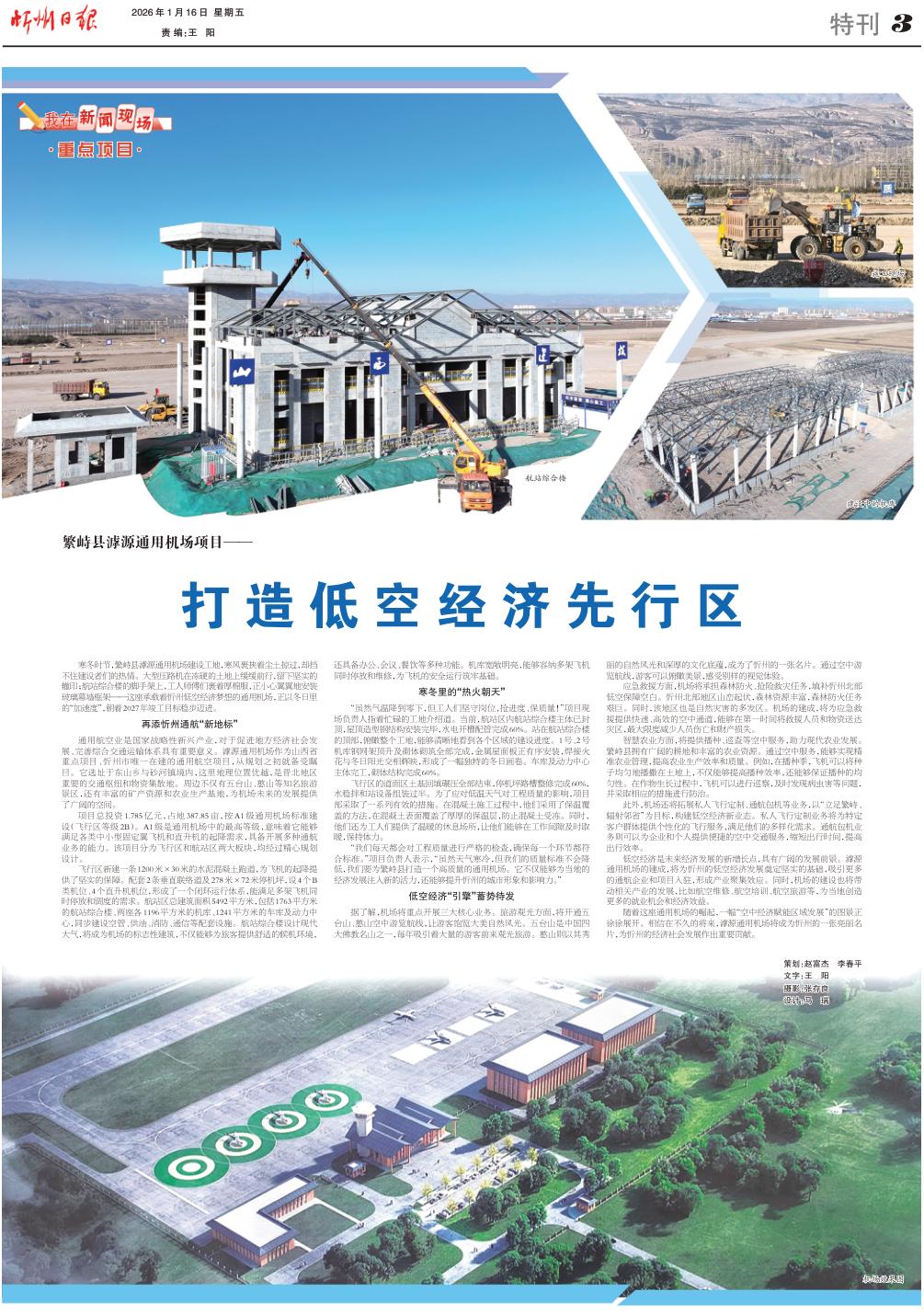 寒冬時節(jié),繁峙縣滹源通用機場建設(shè)工地,寒風(fēng)裹挾著塵土掠過,卻擋不住建設(shè)者們的熱情。大型壓路機在凍硬的土地上緩緩前行,留下堅實的轍印;航站綜合樓的腳手架上,工人師傅們裹著厚棉服,正小心翼翼地安裝玻璃幕墻框架——這座承載著忻州低空經(jīng)濟夢想的通用機場,正以冬日里的“加速度”,朝著2027年竣工目標穩(wěn)步邁進。