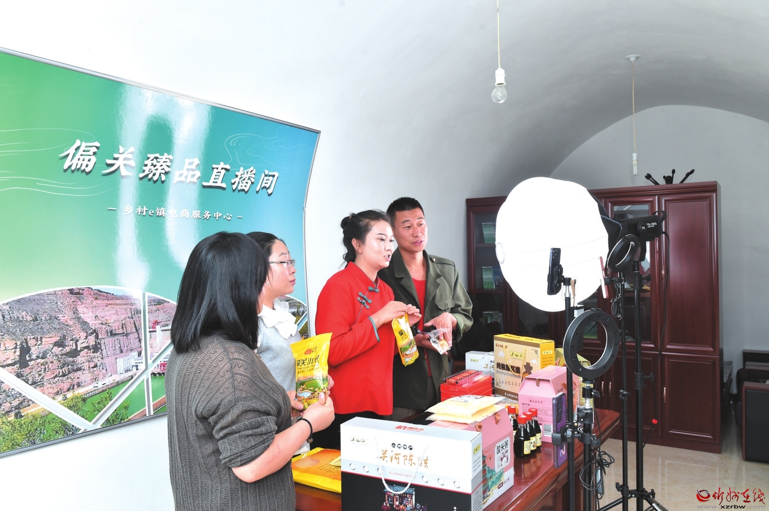偏關鄉(xiāng)村e鎮(zhèn)公共服務中心直播帶貨現(xiàn)場。本報記者 馮曉磊 攝