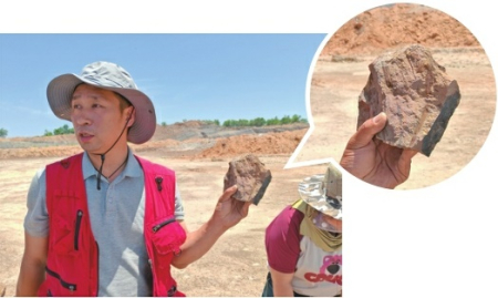 白志君正在向大家展示手中的化石。本報(bào)通訊員攝