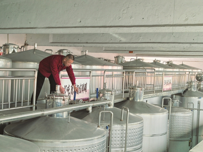 清徐葡萄酒有限公司發(fā)酵車間,工作人員正在檢查發(fā)酵罐。本報(bào)記者晉帥妮攝