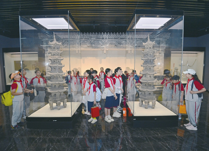 5月18日,太原市清徐縣山西晉韻文化產(chǎn)業(yè)園內(nèi),中小學(xué)生研學(xué)團(tuán)在磚雕藝術(shù)博物館與古建筑模型博物館內(nèi)感受古建筑的匠心巧思。本報(bào)記者王瑞瑞攝