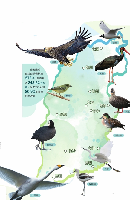 我省地處黃河流域中部,擁有森林、草原、濕地、荒漠、農(nóng)田和城市等生態(tài)系統(tǒng)類型,物種多樣性資源豐富,分布有陸生野生植物2743種,陸生野生動(dòng)物543種,遺傳資源頗具地方特色。近年來(lái),我省高度重視生物多樣性保護(hù)工作,最大限度地為野生動(dòng)植物提供和諧友好的繁衍生息空間,三晉大地生物多樣性“家譜”不斷豐富。