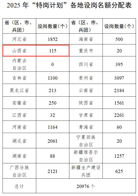 近日,教育部辦公廳、財(cái)政部辦公廳聯(lián)合印發(fā)《關(guān)于做好2025年農(nóng)村義務(wù)教育階段學(xué)校教師特設(shè)崗位計(jì)劃實(shí)施工作的通知》,全國(guó)計(jì)劃招聘特崗教師2萬(wàn)名,其中山西計(jì)劃招聘115名。
