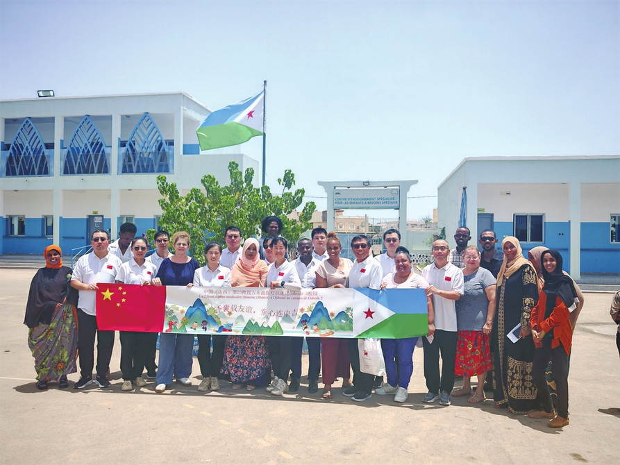 中國(山西)第23批援吉布提醫(yī)療隊走進吉布提特殊兒童學校,開展文化交流與健康關(guān)愛活動。 本報通訊員攝